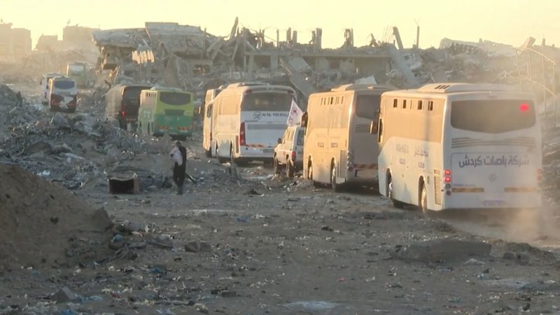 Share Facebook Twitter Pinterest Threads Bluesky Copy Link Video: Ambulances and coaches move through Gaza ahead of hostage releases Ambulances and coaches move through Gaza ahead of hostage releases We’re sorry, this feature is currently unavailable. We’re working to restore it. Please try again later. Dismiss Skip to sections navigationSkip to contentSkip to footer As the ceasefire in the Israeli Palestinian war takes hold, Israeli hostages are returned from Gaza. October 13, 2025 — 5.28pm