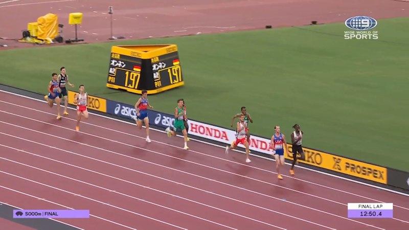 Share Facebook Twitter Pinterest Threads Bluesky Copy Link Ky Robinson storms home to finish fourth in the men’s 5,000m run.