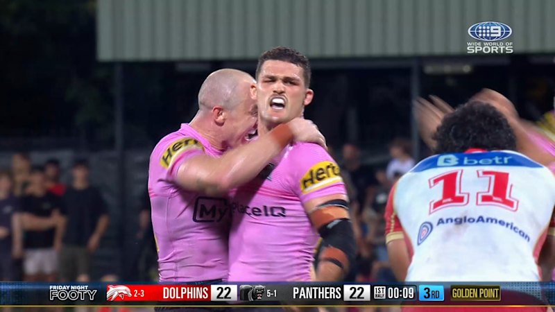 Share Facebook Twitter Pinterest Threads Bluesky Copy Link Nathan Cleary kicks a field goal to defy the Dolphins’ comeback.
