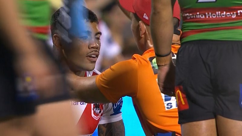 Hame Sele puts his head in the wrong spot and cops a terrible blow to the head.