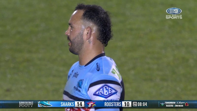 Share Facebook Twitter Pinterest Threads Bluesky Copy Link After a captain’s challenge, the Roosters are awarded a penalty when the Bunker rules that Braydon Trindall took Victor Radley off the ball.