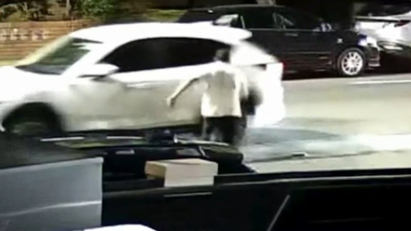 The second thief, who was wearing a motorcycle helmet, attacked the neighbouring case.