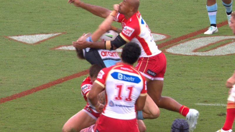 Share Facebook Twitter Pinterest Threads Bluesky Copy Link Dolphins enforcer Felise Kaufusi was bemused after he was penalised for a high shot on Sharks winger Samuel Stonestreet.