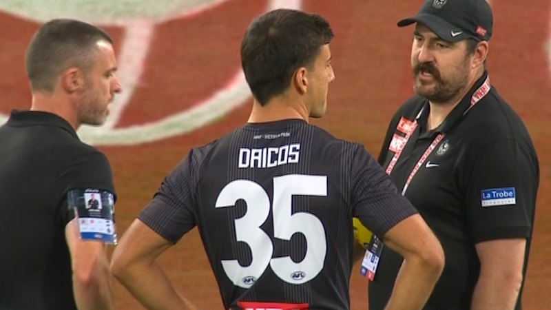 Collingwood superstar Nick Daicos is ruled out of his side’s clash with Brisbane due to a calf injury.