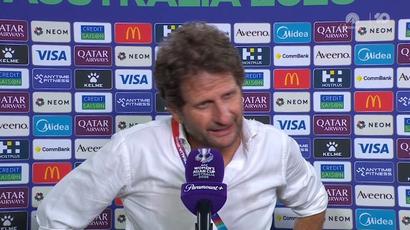 Matildas coach Joe Montemurro had a somewhat awkward post-match interview as he struggled to understand the questions.