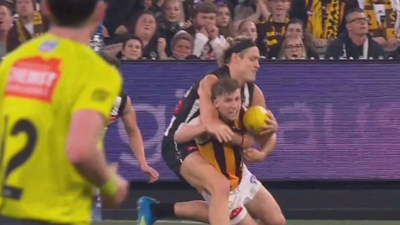 Darcy Moore tackles Dylan Moore high before the latter kicks a goal to seal a draw.