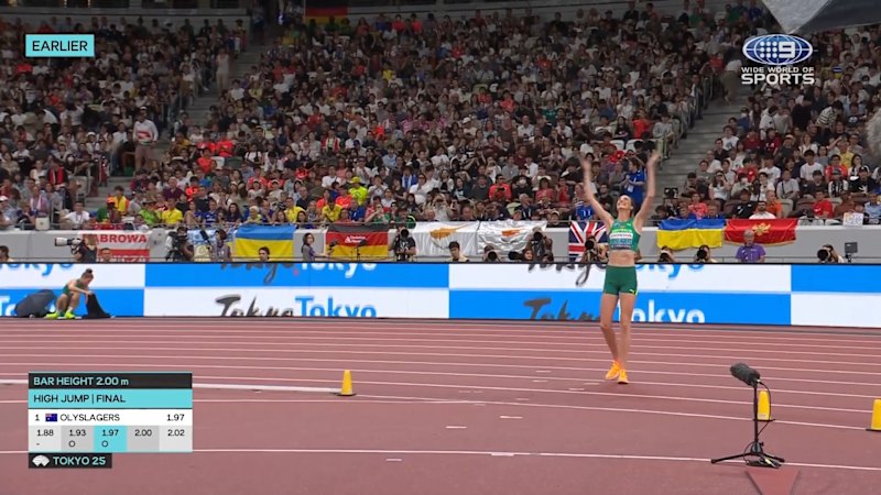 Share Facebook Twitter Pinterest Threads Bluesky Copy Link Video: Olyslagers captures world championship gold Olyslagers captures world championship gold We’re sorry, this feature is currently unavailable. We’re working to restore it. Please try again later. Dismiss Skip to sections navigationSkip to contentSkip to footer Australia’s Nicola Olyslagers secures gold in the women’s high jump at the world athletics championships. September 21, 2025 — 11.58pm