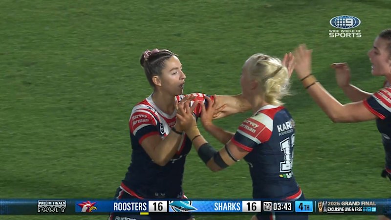 Share Facebook Twitter Pinterest Threads Bluesky Copy Link Jocelyn Kelleher slots a field goal to put the Roosters in front.