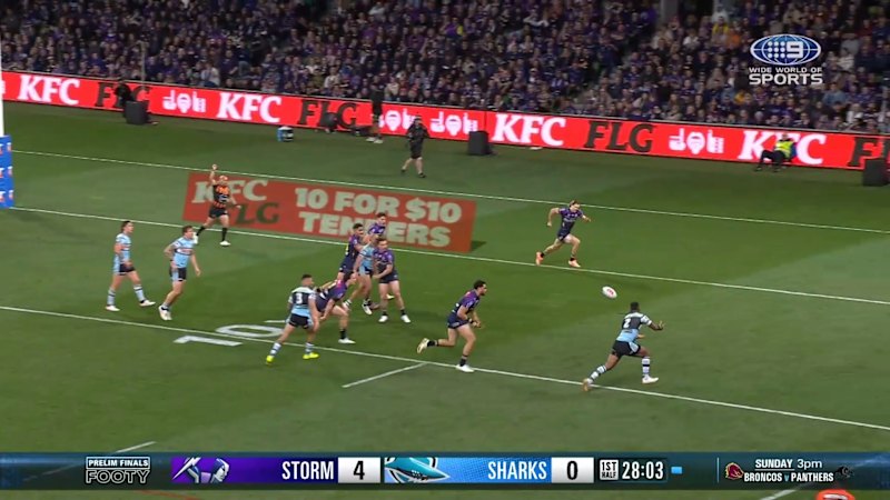 Will Kennedy shows his footwork to put Sione Katoa over in the corner.