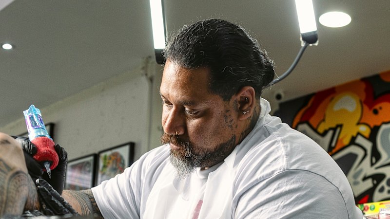 Hennings says he often works from 10am to beyond midnight at his tattoo business.Credit: Sitthixay Ditthavong