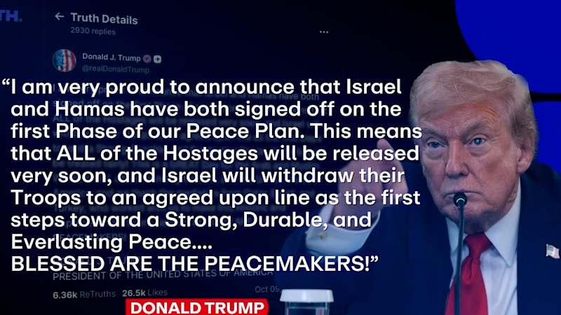 Trump announces Israel and Hamas both sign off first phase of peace deal