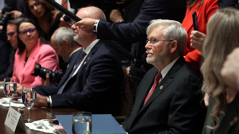 The White House meeting was briefly soured by an awkward moment when Donald Trump was asked about disparaging tweets Australia’s ambassador to the US, Kevin Rudd, had made about him in the past.