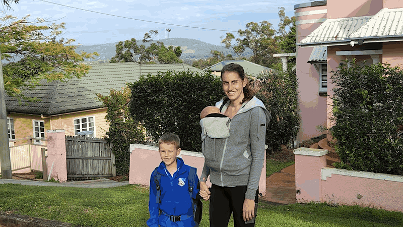 The Hanleys’ walk from school to childcare is through quieter residential streets, but half the route does not have footpaths at all.