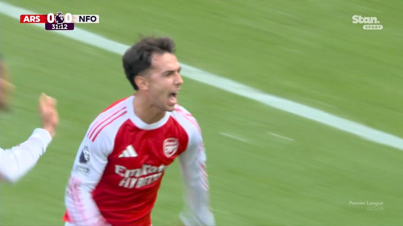 Share Facebook Twitter Pinterest Threads Bluesky Copy Link Martín Zubimendi opens the scoring for Arsenal with a cracking volley.
